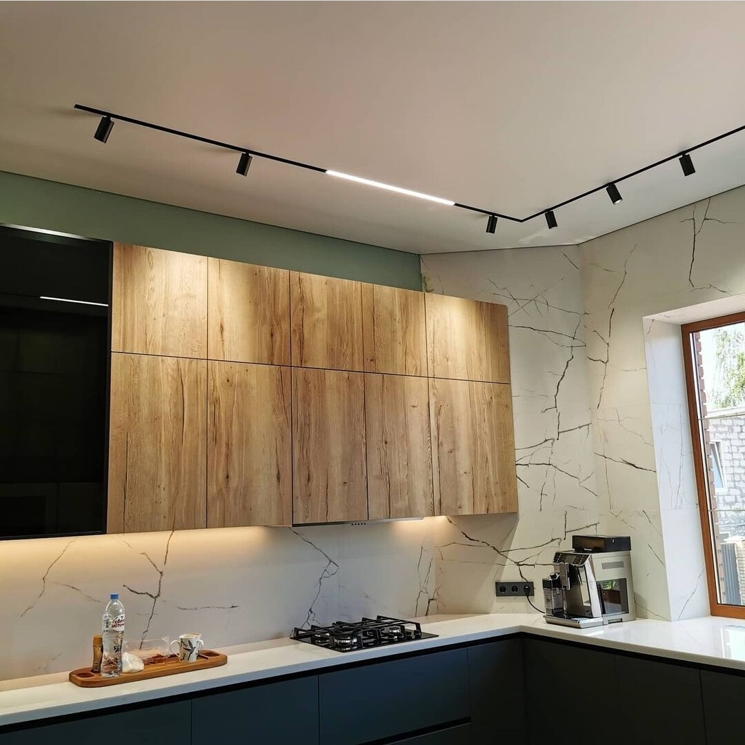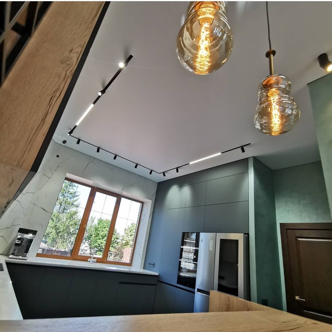 Инновационные профильные системы от нашей компании позволяют встроить в полотно абсолютно любой шинопровод и светильник.