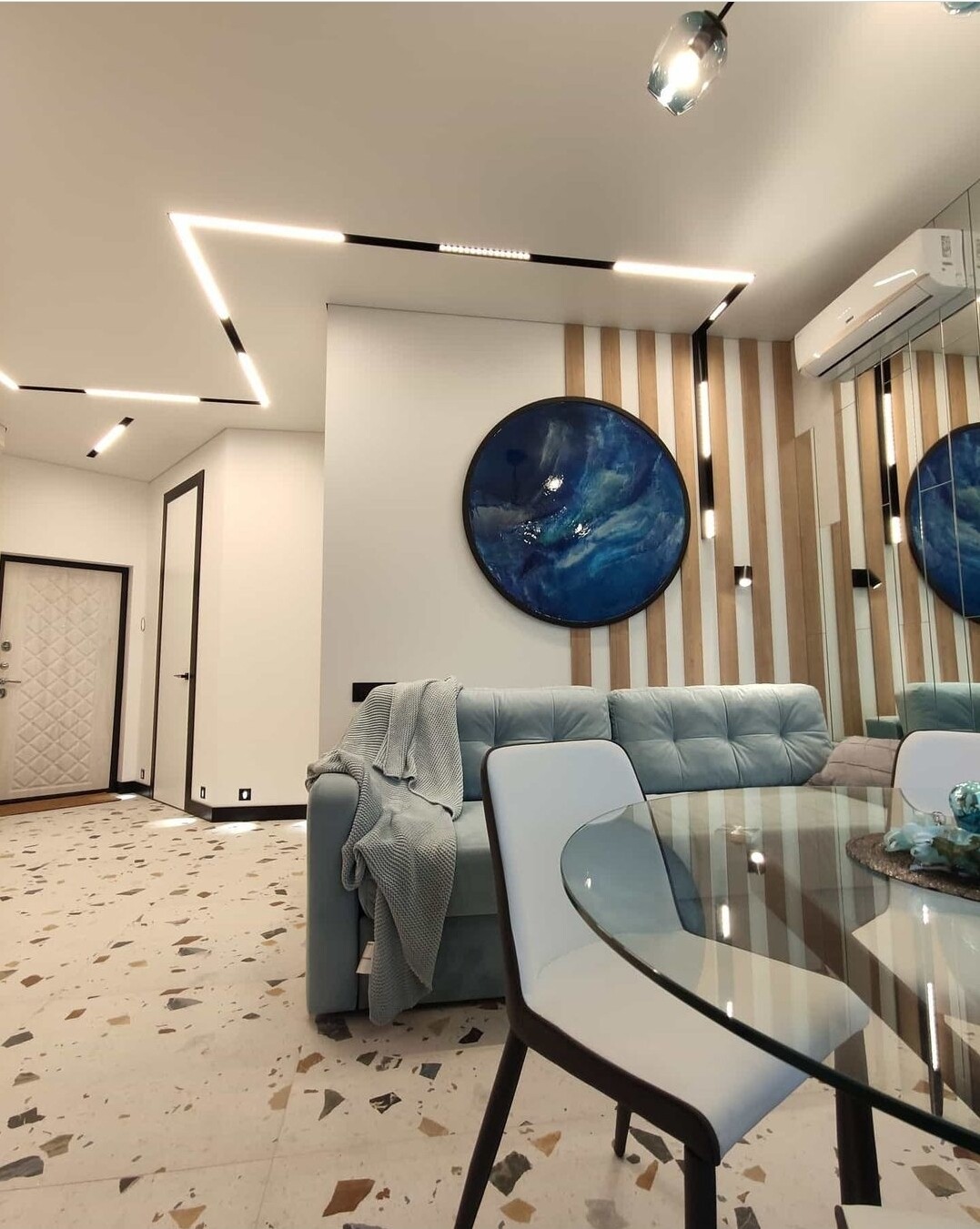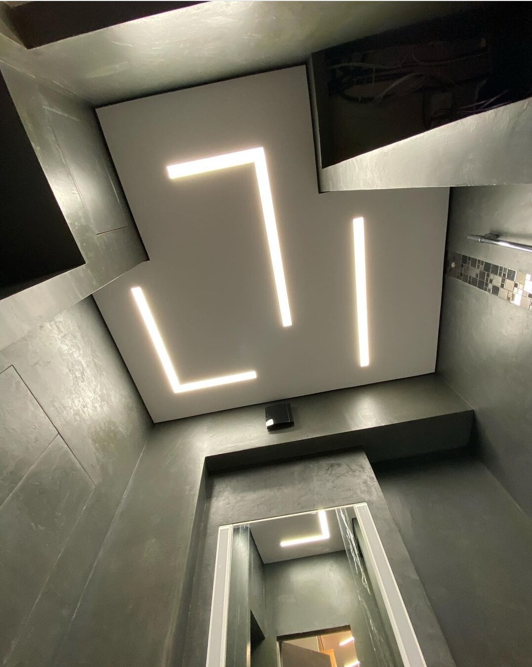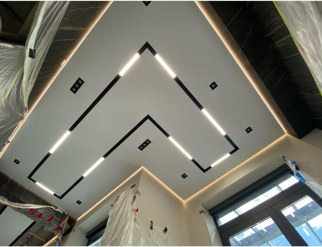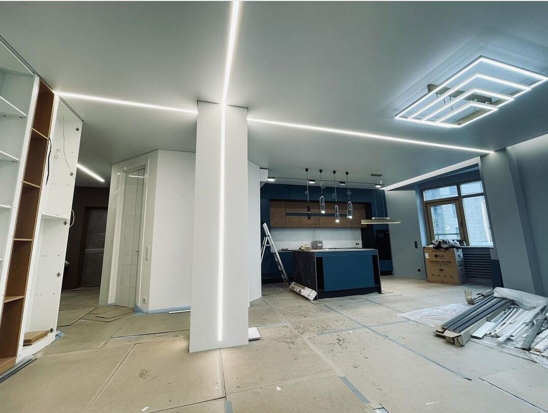 Натяжные потолки в Гродно, цены (стоимость), матовые, глянцевые, сатиновые, тканевые, двухуровневые с установкой, световые линии, теневые потолки, парящие потолки