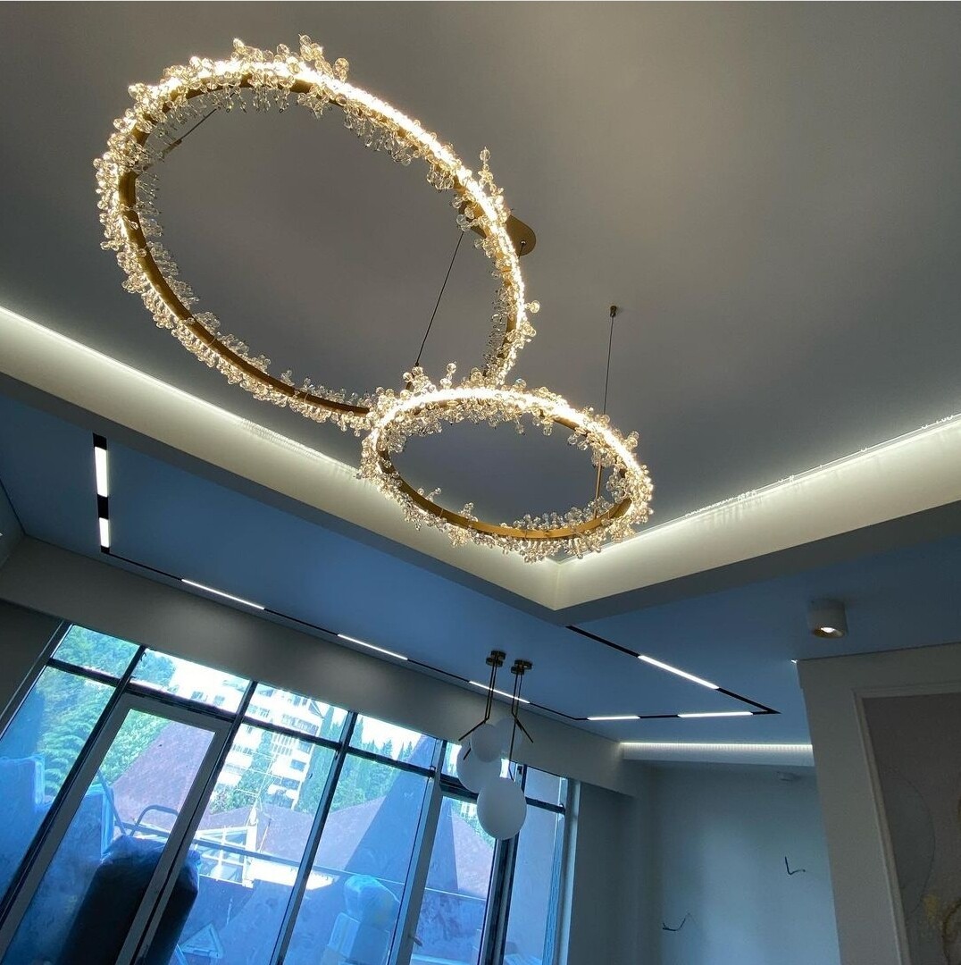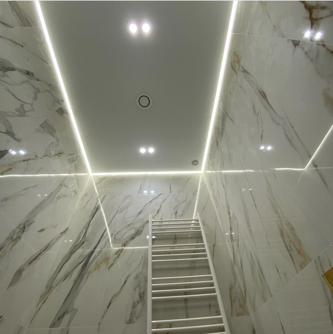 Натяжные потолки в Гродно, цены (стоимость), матовые, глянцевые, сатиновые, тканевые, двухуровневые с установкой, световые линии, теневые потолки, парящие потолки